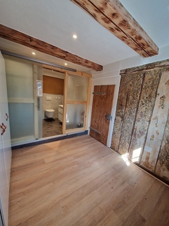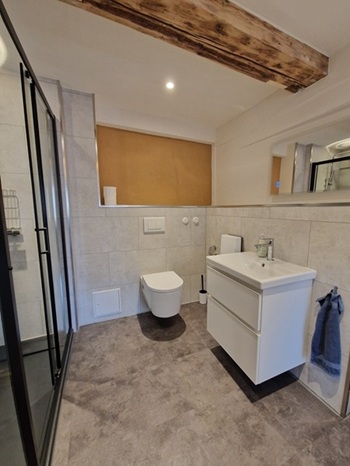 € 79,00 für max. 2 Personen pro Nacht: DZ mit Doppelbett (180x200 cm), voll ausgestattete kleine Küchenzeile, Ankleidezimmer mit Kleiderschrank und Bad mit WC, Waschbecken, Dusche und Fußbodenheizung.