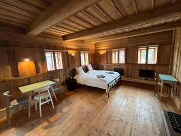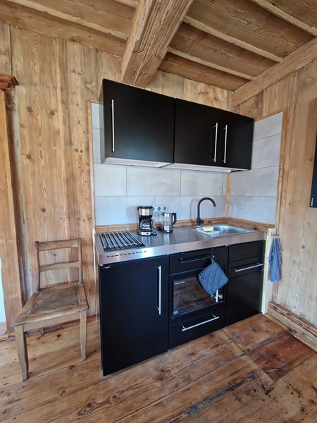 € 79,00 für max. 2 Personen pro Nacht: DZ mit Doppelbett (180x200 cm), voll ausgestattete kleine Küchenzeile, Ankleidezimmer mit Kleiderschrank und Bad mit WC, Waschbecken, Dusche und Fußbodenheizung.